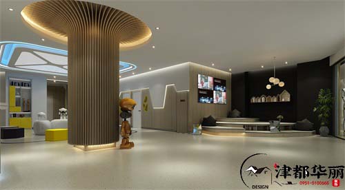 今天分享的是樂高機器人教育中心設計裝修案例,提到樂高,大家會想到什么呢?我們想到了樂高對小朋友的合作能力、創造力和智慧的激發。樂高世界里,小朋友們可以搭建自己的城堡,創造屬于自己的世界。他們是這個世界的希望,可以用來表現世界上任何東西,他們代表著創造、合作和智慧。本次樂高教育中心設計整體以木色與白色為主,打造輕松活力的氛圍。前臺背景墻選擇了木質的簡約材質,配個周圍的藍色帶和天花板錯落的格子燈飾,營造了恰到好處的科技感。黃色則是點睛之筆,一顆熱情的心,對誰來說都是必不可少的。樂高幾何圖形的使用,配以明亮的燈光線條,傳達出溫暖快樂的視覺感受,冷暖色搭配奠定了樂高機器人教育中心設計,創新與未來的基調。